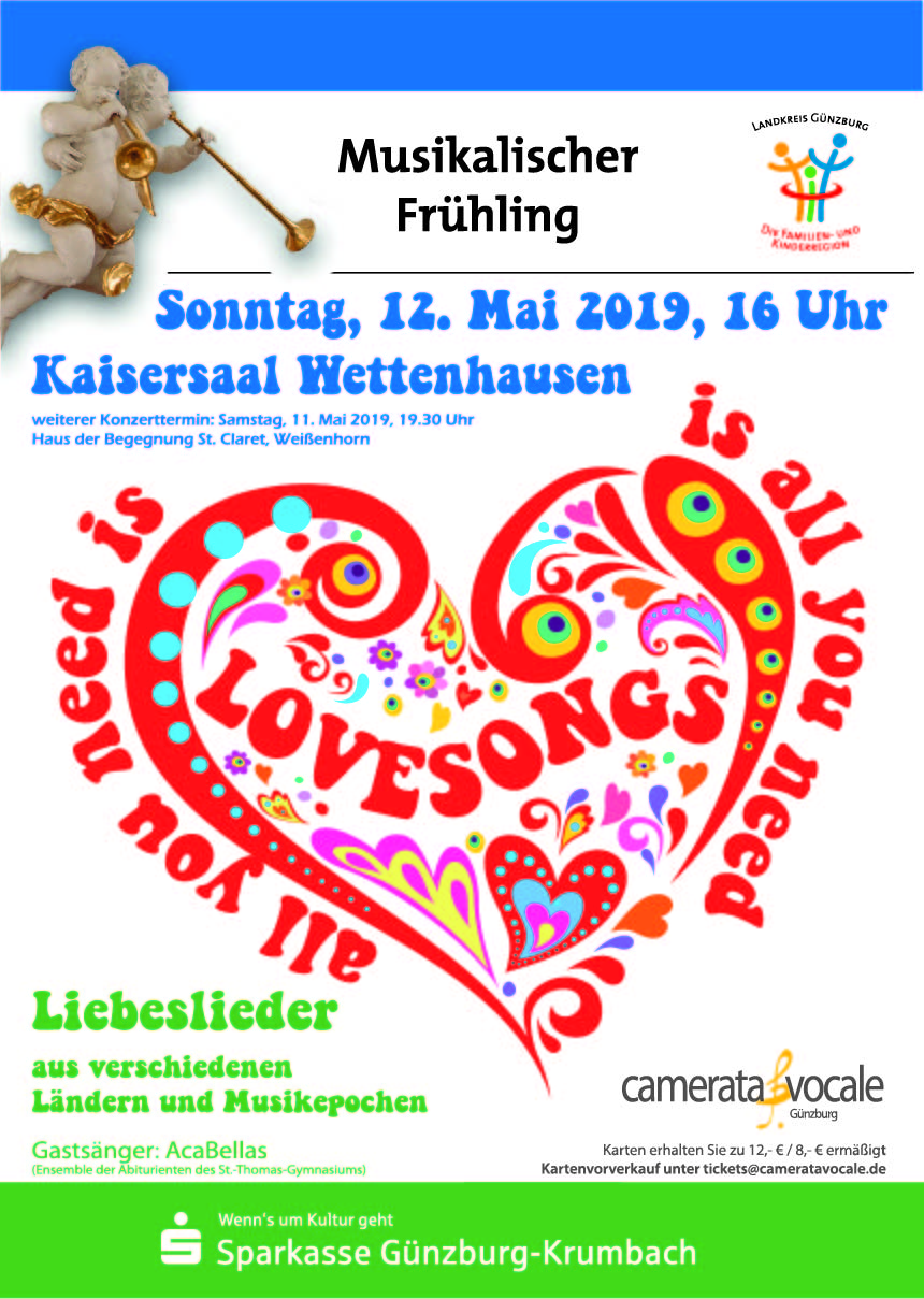 Im Wonnemonat Mai, der Zeit der Liebe und der Lieder, lädt das Vokalensemble camerata vocale am Muttertagswochenende zu einem Konzert voller alter und neuer Love Songs und Liebeslieder ein.