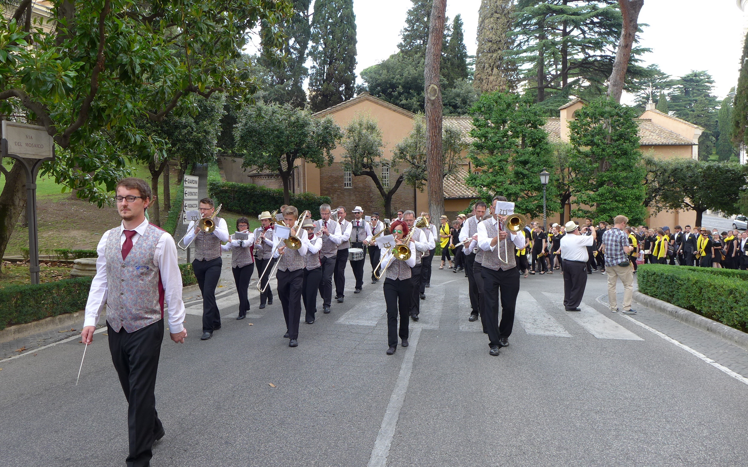 Die Stadtkapelle Günzburg mit Dirigent Lukas Weiss bei der Prozession in den Vatikanischen Gärten